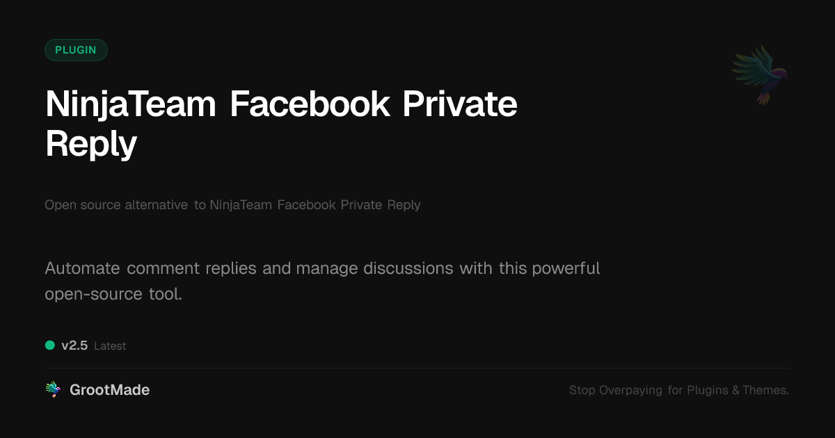 | Tags | comment automation, private reply, payment status, content security for websites, custom payment integration, Engagement, Chatbot, Facebook, Facebook Comments, Ninjateam, Social Media, open source, digital identity control, content management, online community safety, Digital Downloads, customer support, cms caching, Messaging, automation |