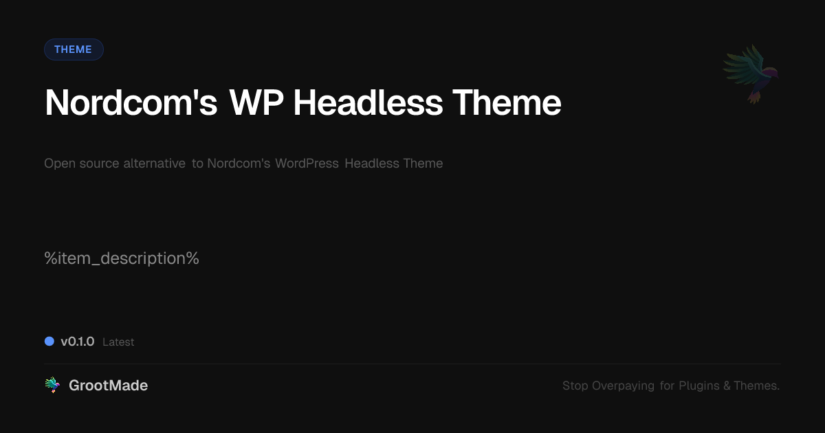 GrootMade is not affiliated with Nordcom’s WP Headless Theme and provides an open-source alternative.