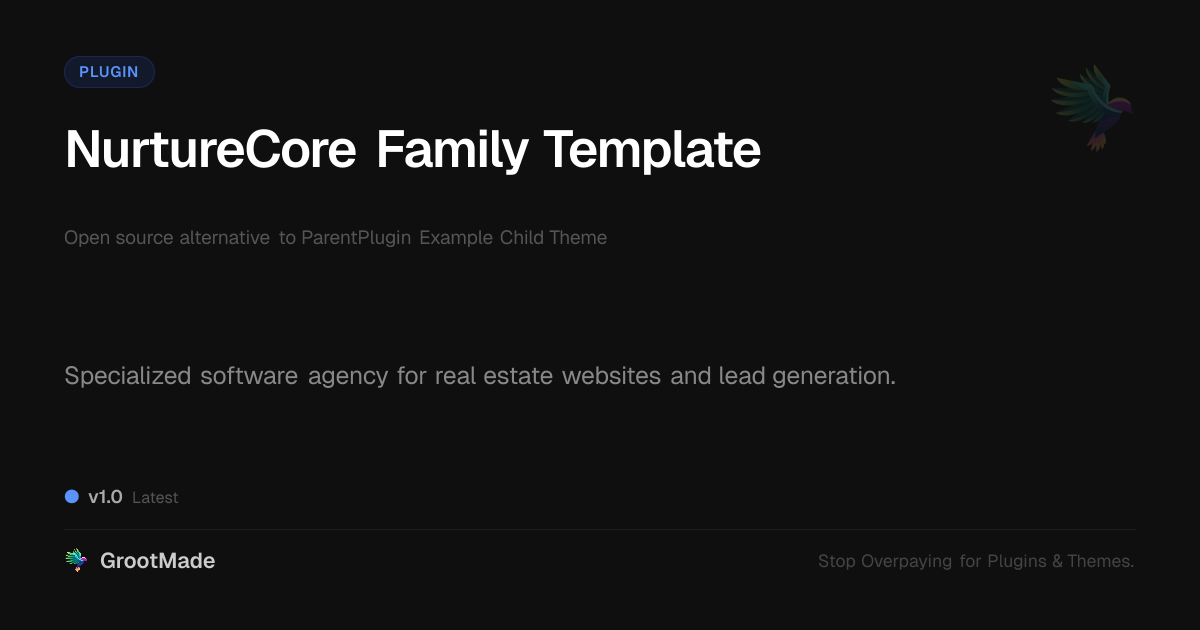 GrootMade is not affiliated with ParentPlugin Example Child Theme and provides an open-source alternative.