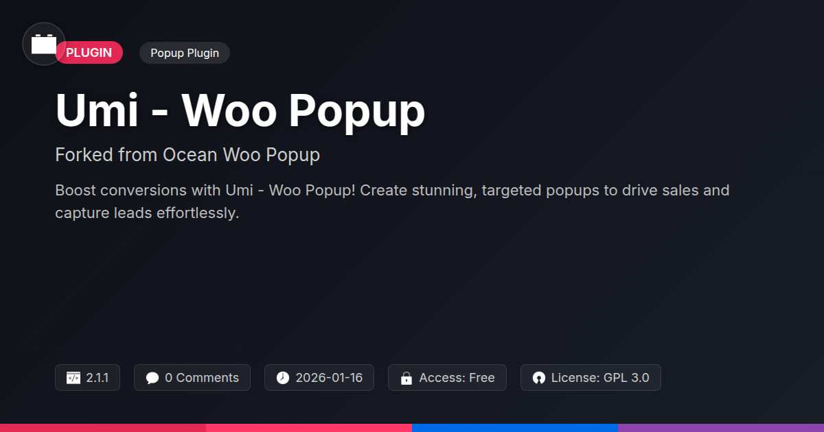 | Tags | product display, lead generation popups, website engagement, popup plugin, ecommerce popups, store marketing tools, shop, transaction data tool, e-commerce site search, property listing template, Cross Sell, Cart, Popup, Upsell, data tracking software, Checkout, online community safety, product metadata indexing, member profile enhancements, WC, Ecommerce, marketing |