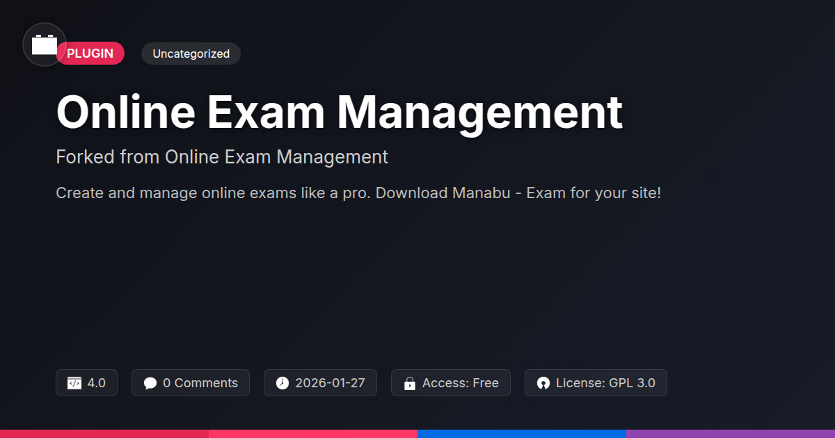 | Tags | assessment tool, quiz plugin, education, exam creator, online examination system, test management, digital delivery tool, online store testing, shop filters, Student, Teacher, E Learning, Quiz, Grading, Assessment, Exam, Online Test, Question Bank, online community safety, profile tab builder, user contact form |
