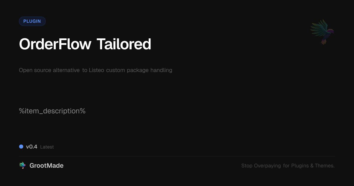 GrootMade is not affiliated with Listeo custom package handling and provides an open-source alternative.