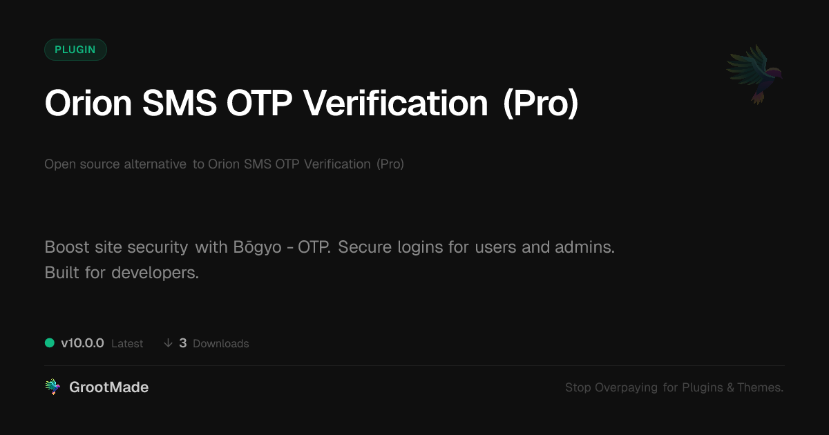 | Forked from | Orion SMS OTP Verification (Pro) |