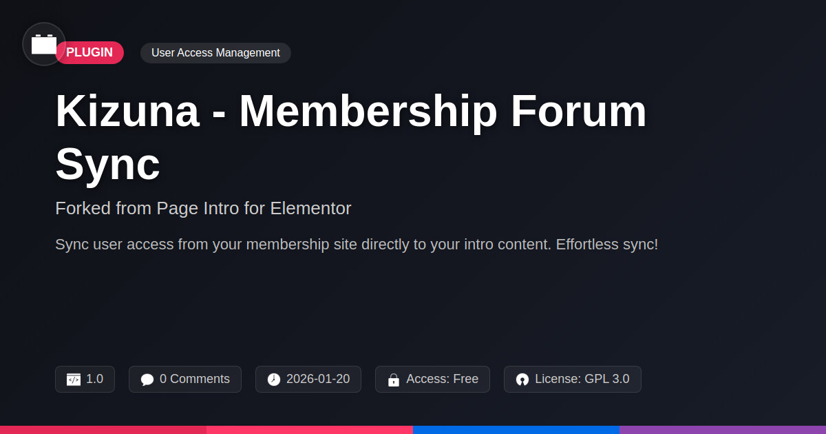 | Tags | frontend design, page builder, user access control, elementor, membership sync, call to action, forum integration, page intro, hero section, WP community tools, Website Header, Content Intro, Landing Page, website builder, digital identity control, developer tool, content restriction, user role visibility, user contact form, member communication plugin |