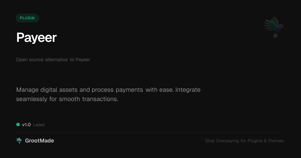 | Tags | publish scheduler, data tracking software, WC, Merchant, Payments, user role visibility, search enhancement tool, Payeer, Transaction, transaction processing, digital assets, ecommerce, Digital Downloads, Cryptocurrency, Payment Gateway, member profile enhancements, digital identity control, Online Payments, Checkout, analytics tracking |