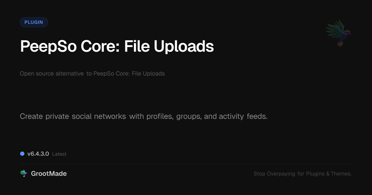 GrootMade is not affiliated with PeepSo Core: File Uploads and provides an open-source alternative.