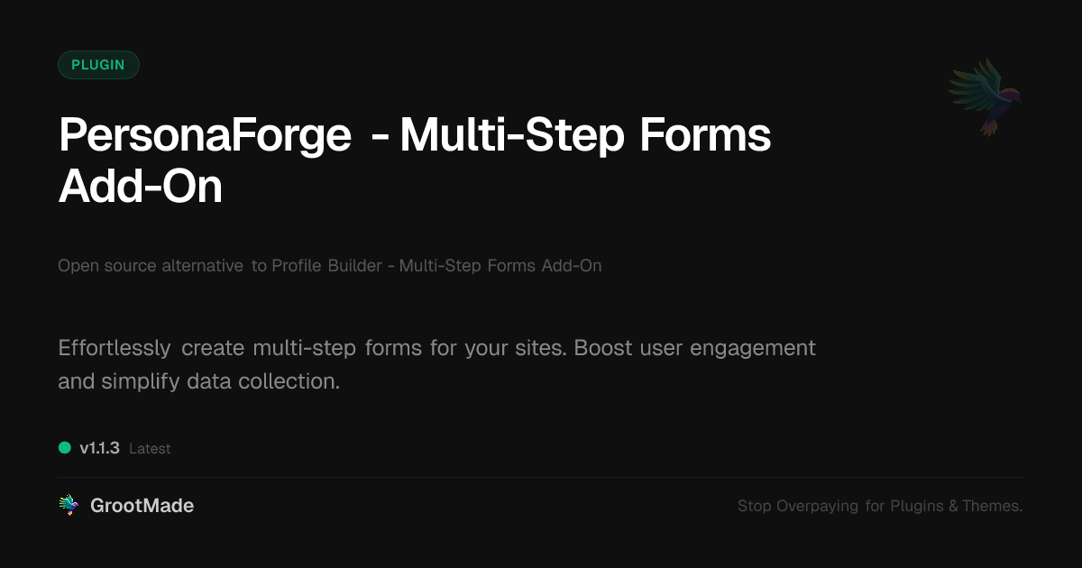 GrootMade is not affiliated with Profile Builder - Multi-Step Forms Add-On and provides an open-source alternative.