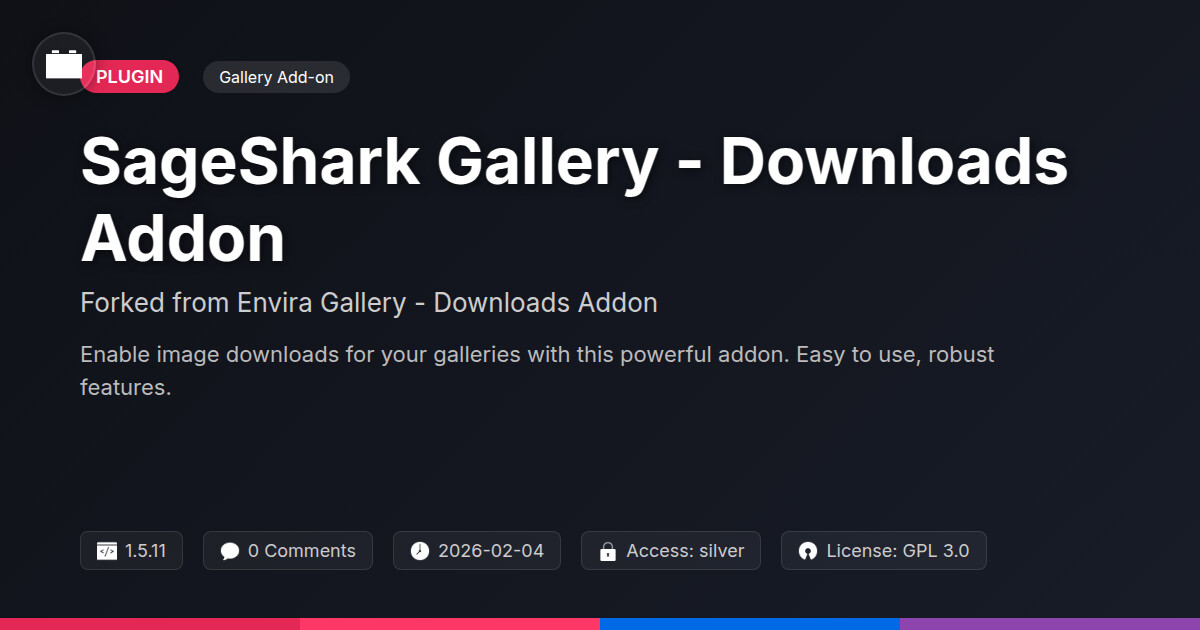| Tags | downloadable media addon, Downloads, Files, gallery, WP community tools, content distribution tool, Images, Media, content management, gallery download functionality, file sharing, profile tab builder, Addon, Zapier, translator management, GA4 server-side tracking, Paypal Advanced, visual asset management, online community safety, image sharing plugin, File Downloads, user experience, WP plugin, multilingual translation, product likes plugin |