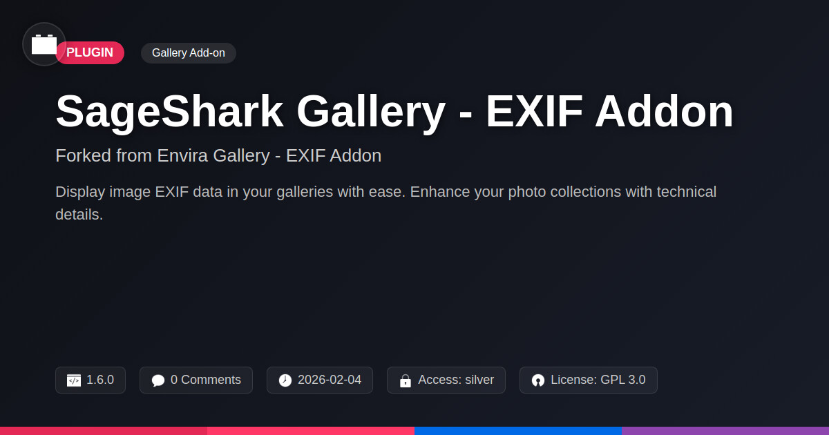 | Forked from | Envira Gallery - EXIF Addon |