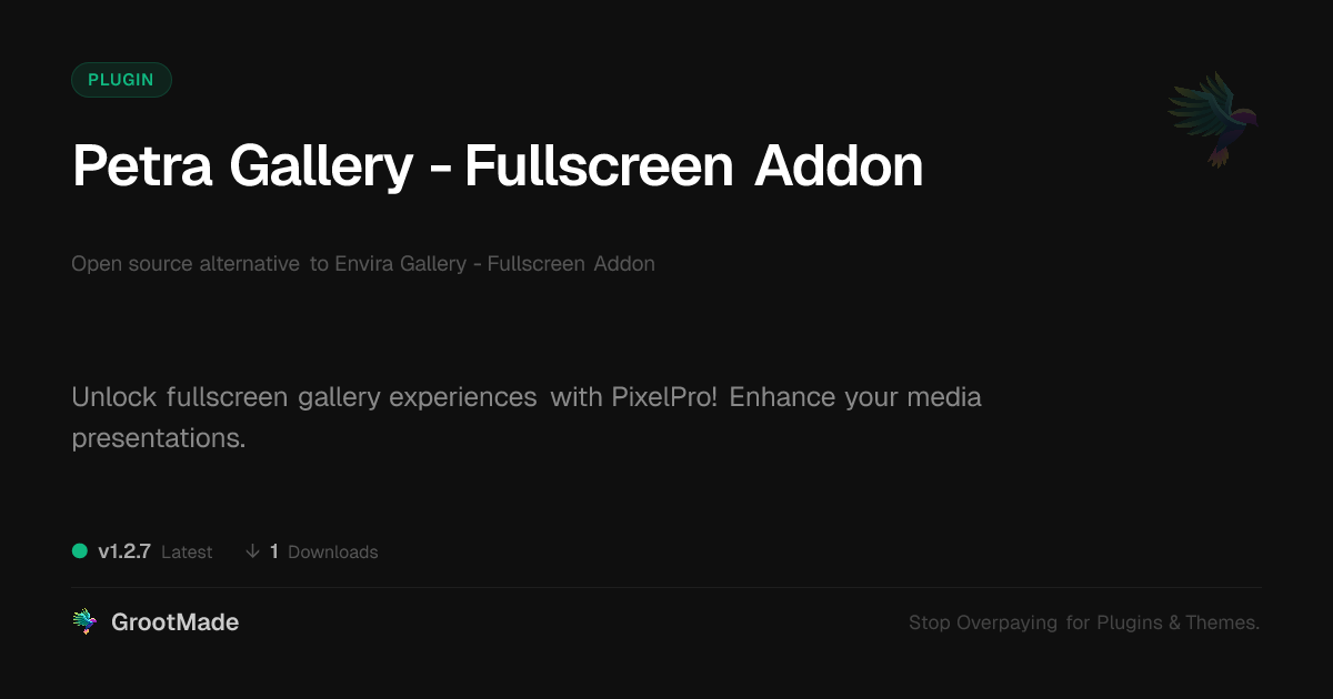 | Tags | gallery plugin, fullscreen gallery, media presentation tool, WP community tools, fullscreen gallery WP, Media Display, photo gallery, Envira Gallery, best WP gallery, responsive gallery, image gallery addon, responsive gallery plugin, user contact form, WP gallery, member communication plugin, photography, image gallery, visual content |