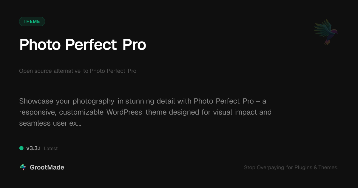 | Tags | gallery, photography, showcase, digital delivery payments, multilingual translation, Professional, Images, Visual, Lightbox, online community safety, recent profile visitors, downloadable product plugin, creative, portfolio, WP community tools, responsive |