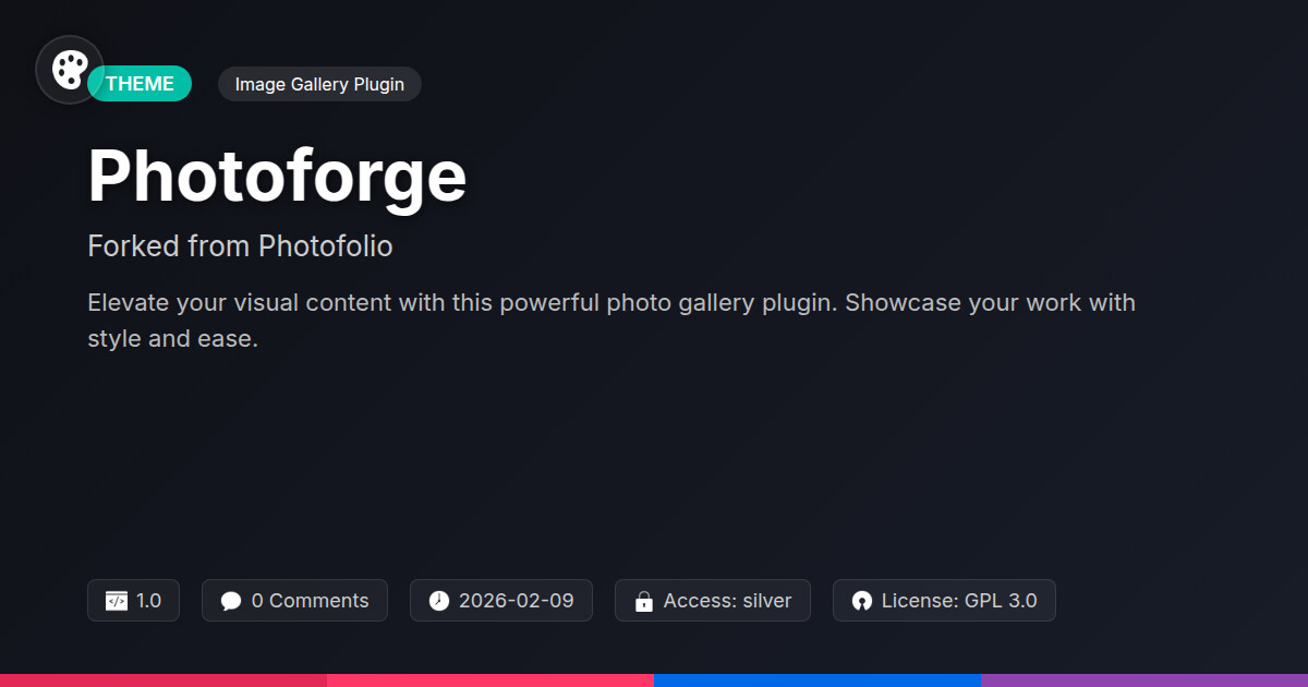 | Tags | content presentation, image gallery, photo showcase, gallery, photography, visual display, Visual, Photographer, Image Focused, developer tool, online community safety, downloadable product plugin, Minimalist, creative, portfolio, WP community tools, responsive, modern |