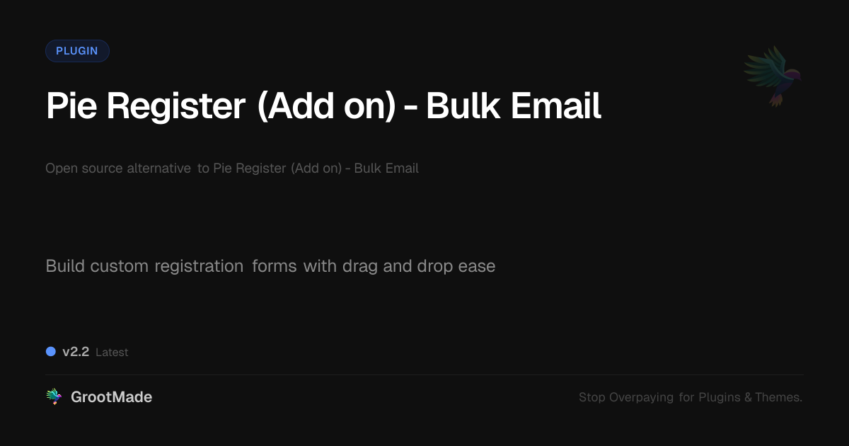 GrootMade is not affiliated with Pie Register (Add on) - Bulk Email and provides an open-source alternative.