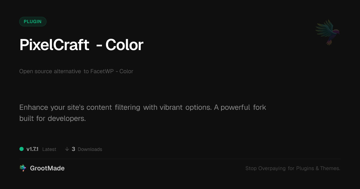 | Tags | customization, directory comparison, WC, Color Picker, content filtering, Filter, Color, website enhancement, open source, download integration, ecommerce, Digital Downloads, e-commerce site search, site search, digital identity control, product filters, product display, user experience, shop |