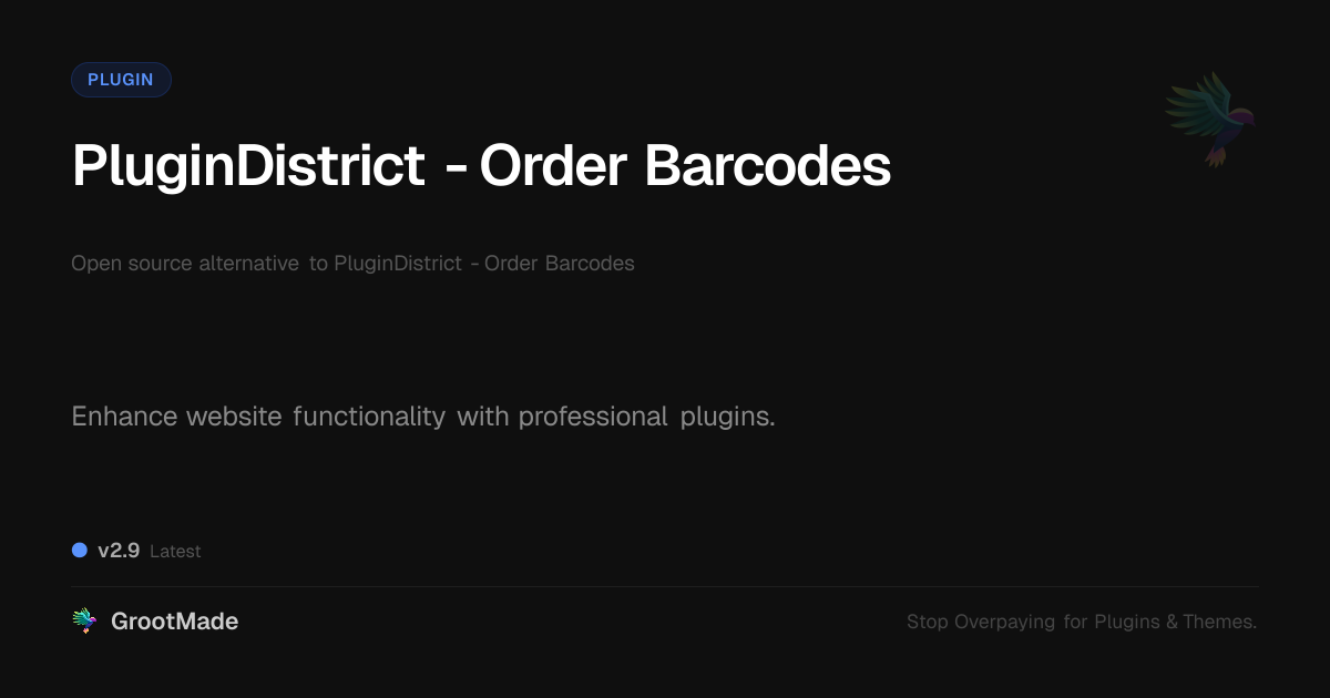GrootMade is not affiliated with PluginDistrict - Order Barcodes and provides an open-source alternative.