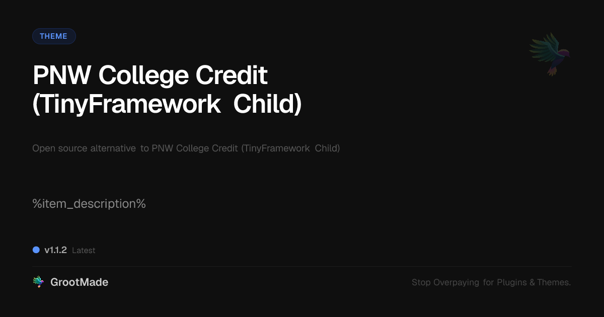 GrootMade is not affiliated with PNW College Credit (TinyFramework Child) and provides an open-source alternative.