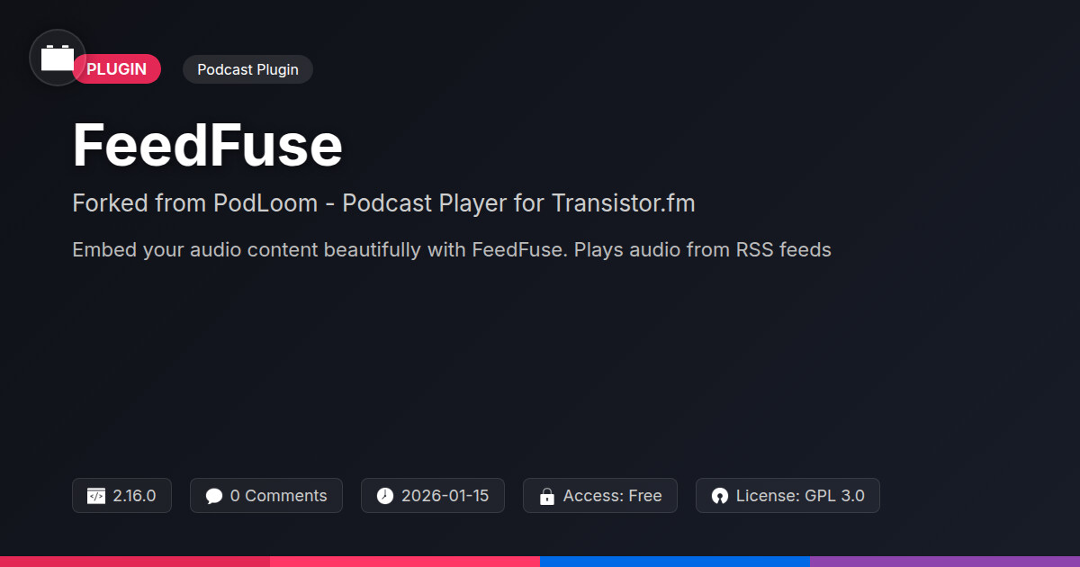 | Tags | audio player plugin, podcast player, rss feed embed, transistor fm player, website audio integration, WP, product launch tool, downloadable product plugin, product likes plugin, Audio, Media, Rss, Feed, Player, Podcast, Episodes, Transistor, streaming, digital identity control, profile tab builder, user role visibility |