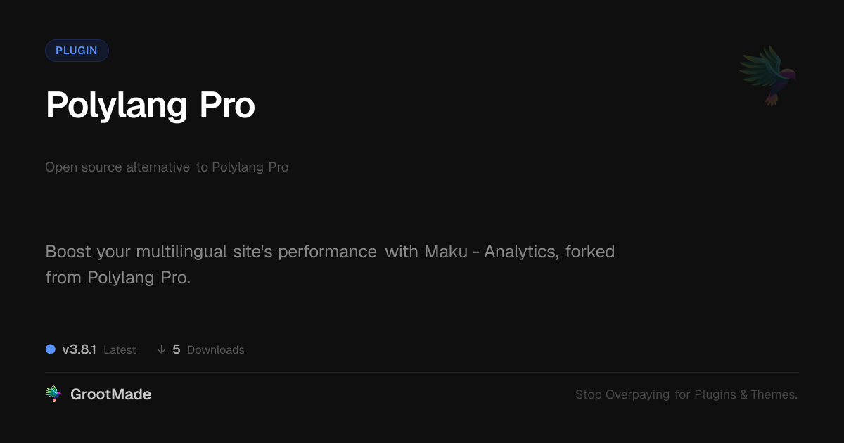 GrootMade is not affiliated with Polylang Pro and provides an open-source alternative.