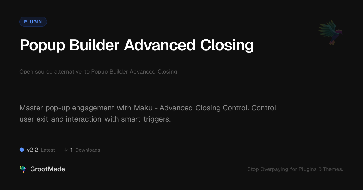 GrootMade is not affiliated with Popup Builder Advanced Closing and provides an open-source alternative.