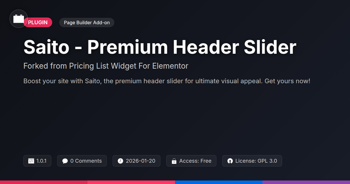 | Tags | website design tools, page builder add-on, elementor, restaurant, elementor slider, header slider, premium header, price list, comparison table, visual promotion addon, content heavy site, domain blocker, Widget, Menu, Service Pricing, Pricing, site plugin, product pricing, product metadata indexing, Ecommerce |
