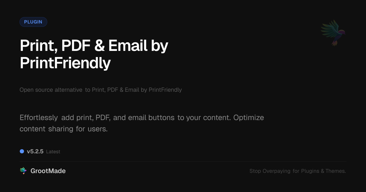 GrootMade is not affiliated with Print, PDF & Email by PrintFriendly and provides an open-source alternative.