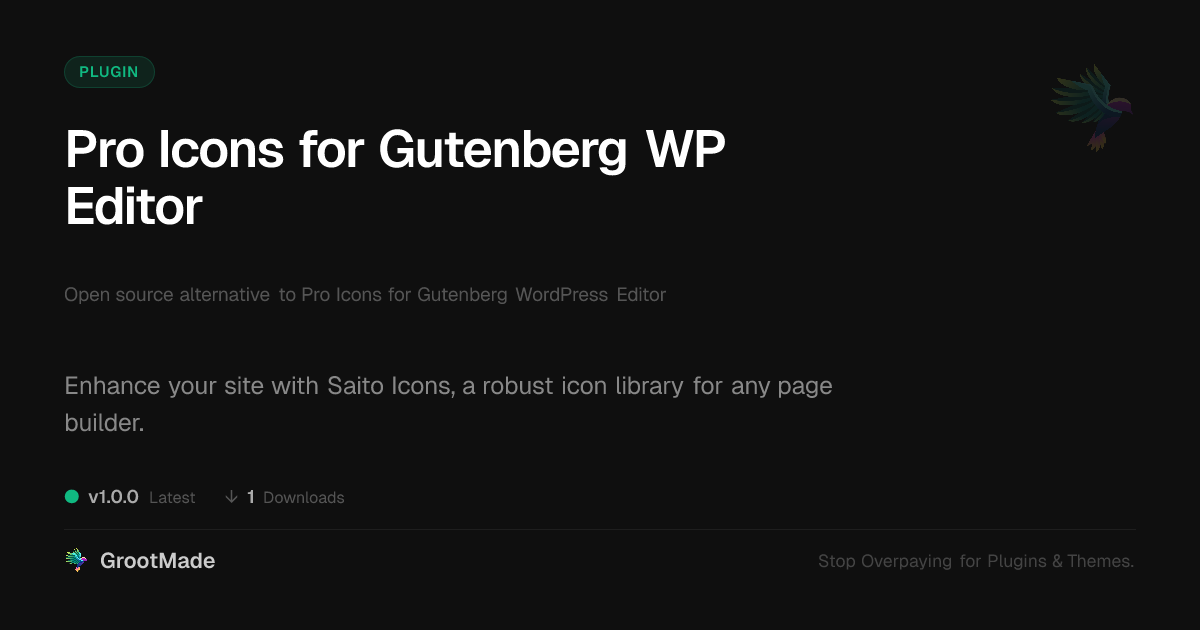 | Tags | custom icons, web design, gutenberg, icon library, editor enhancement, gutenberg icons, site builder assets, infinite scroll plugin, gallery plugin development, translation plugin add-on, Design, Developer Tools, Blocks, WP Editor, Ui Ux, Icons, Digital Downloads, member communication plugin, user role visibility, user contact form |