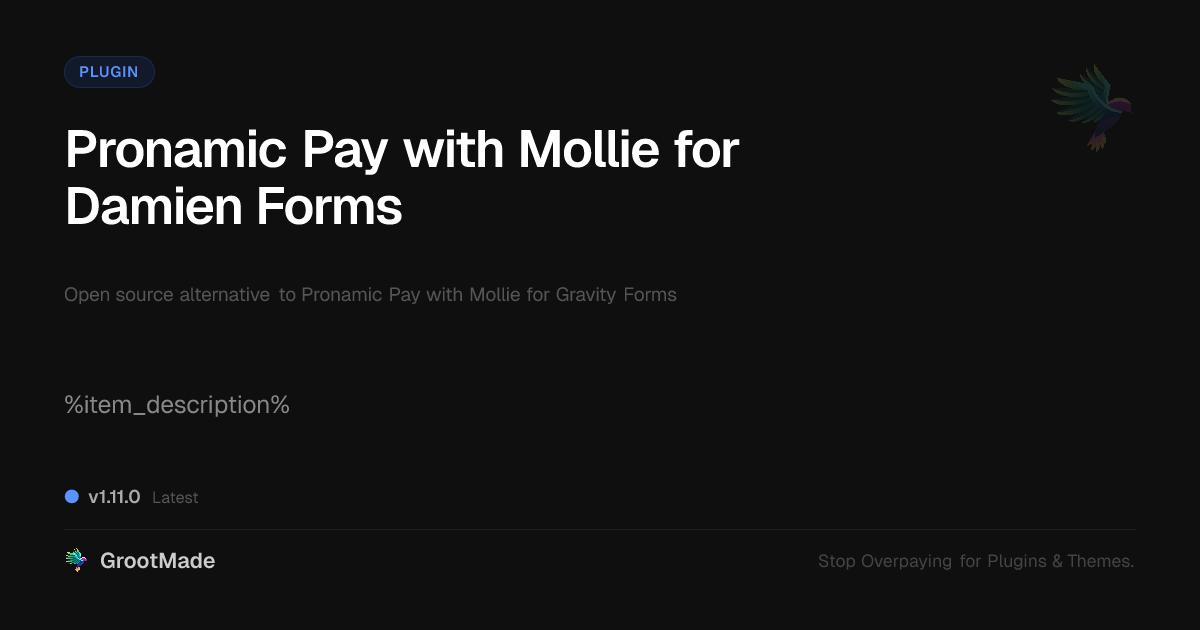 GrootMade is not affiliated with Pronamic Pay with Mollie for Gravity Forms and provides an open-source alternative.