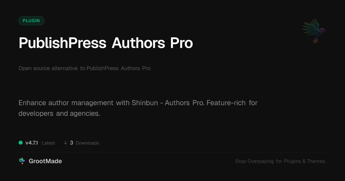 | Tags | user roles, editorial workflow, author bio box, content attribution plugin, multi-author plugin, download monitor integration, php script repository, dynamic content builder, Publishing, Authors, Guest Authors, Co Authors, Multiple Authors, Bylines, Post Authors, content management, Digital Downloads, recent profile visitors, WP author plugin |