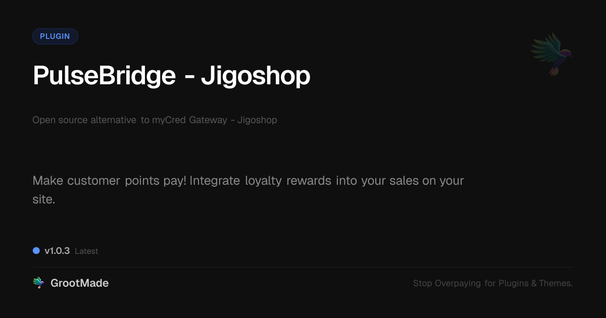 GrootMade is not affiliated with myCred Gateway - Jigoshop and provides an open-source alternative.