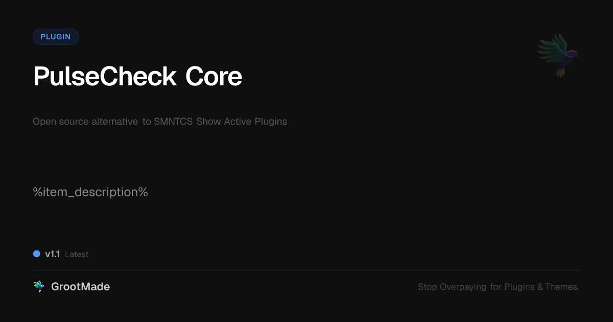 GrootMade is not affiliated with SMNTCS Show Active Plugins and provides an open-source alternative.