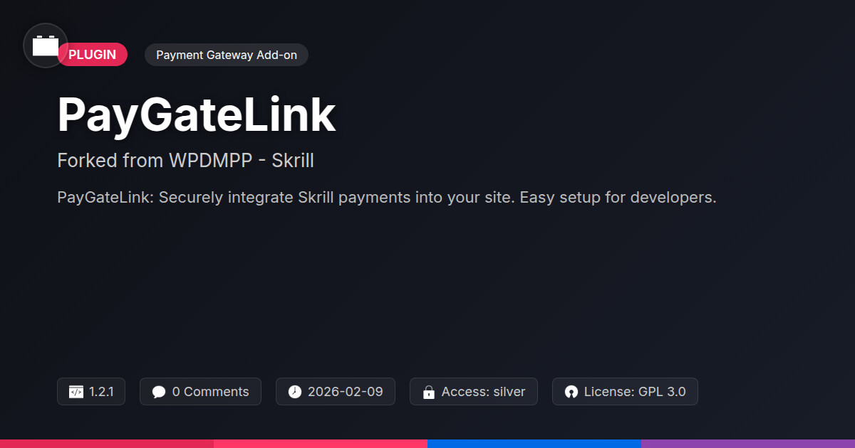 | Tags | Payment Processing, cms plugin, skrill integration, Payments, Transaction, Gateway, Payment Gateway, data tracking software, secure payments, Checkout, Online Payments, Digital Downloads, member profile enhancements, WC, profile tab builder, Ecommerce, user role visibility, user contact form, member communication plugin |