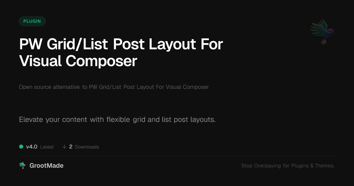 | Forked from | PW Grid/List Post Layout For Visual Composer |