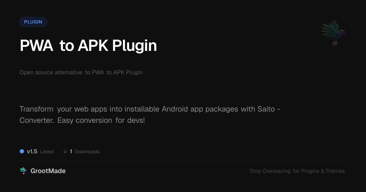 GrootMade is not affiliated with PWA to APK Plugin and provides an open-source alternative.