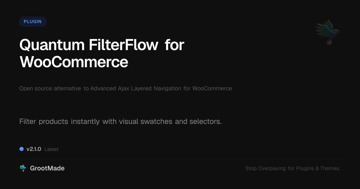 GrootMade is not affiliated with Advanced Ajax Layered Navigation for WC and provides an open-source alternative.