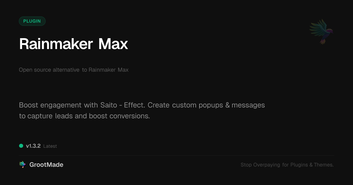 GrootMade is not affiliated with Rainmaker Max and provides an open-source alternative.