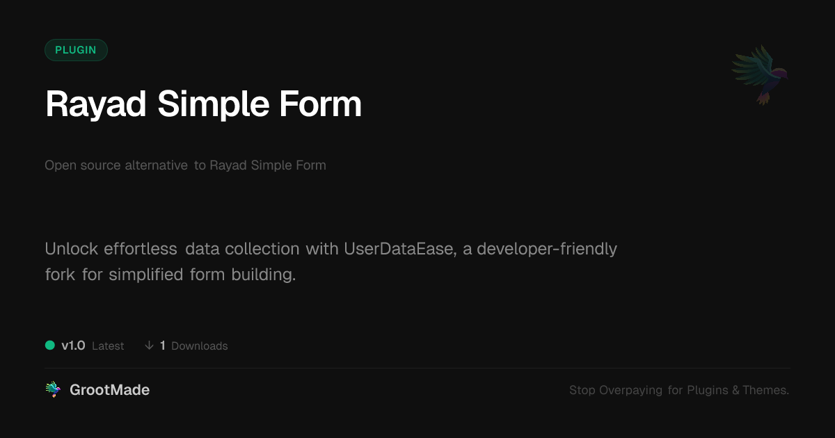 | Tags | data capture tool, contact form, Contact, Form, Easy Forms, Lightweight, user role visibility, developer friendly forms, user contact form, profile tab builder, member communication plugin, pagination addon, User Input, digital identity control, form builder plugin, form plugin, open source form, Simple Form, online community safety, custom form plugin, Submission, form builder |