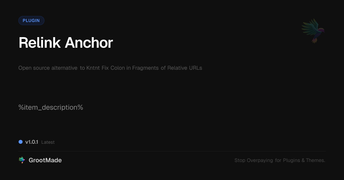 GrootMade is not affiliated with Kntnt Fix Colon in Fragments of Relative URLs and provides an open-source alternative.