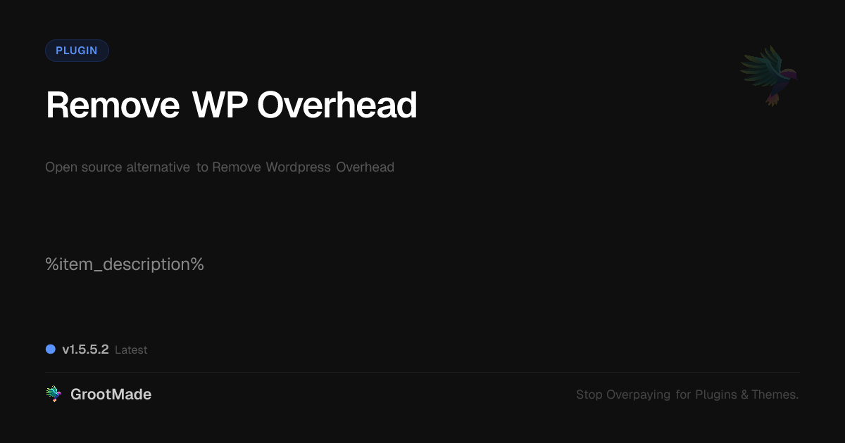 GrootMade is not affiliated with Remove WP Overhead and provides an open-source alternative.