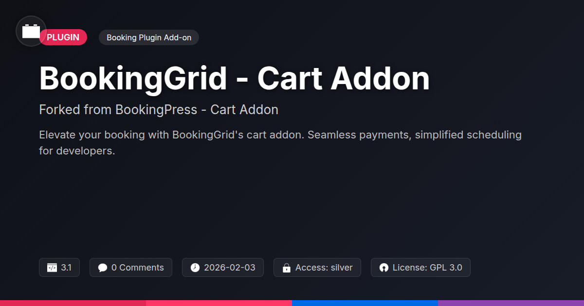 | Tags | Appointments, Eventmanagement, data tracking software, WC, Scheduling, scheduling plugin, Bookingsystem, Reservation, booking management, multilingual website plugin, Ecommerce, booking system, visual promotion addon, appointment addon, cart integration, member profile enhancements, digital identity control, content spotlight plugin, online community safety, Cart, Booking, Checkout, media addon |
