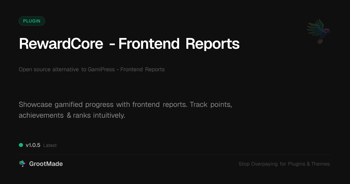 | Tags | achievement tracking, gamification reports, frontend reporting, points visualization, rank display, mobile forum optimization, clan website theme, Dashboard, Analytics, Tracking, User Data, Reports, Metrics, Visualization, performance, Insights, profile tab builder, IT-tech fork, user role visibility, Frontend, user contact form, member communication plugin |