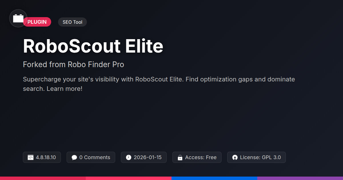 | Tags | developer productivity, website management tool, open source inspired, site information finder, web project organization, stock market plugin, developer optimization plugin, Statistics, Ai, Machine Learning, Scout, Robotics, automation, data analysis, online community safety, team management, performance tracking, Sports Analytics |