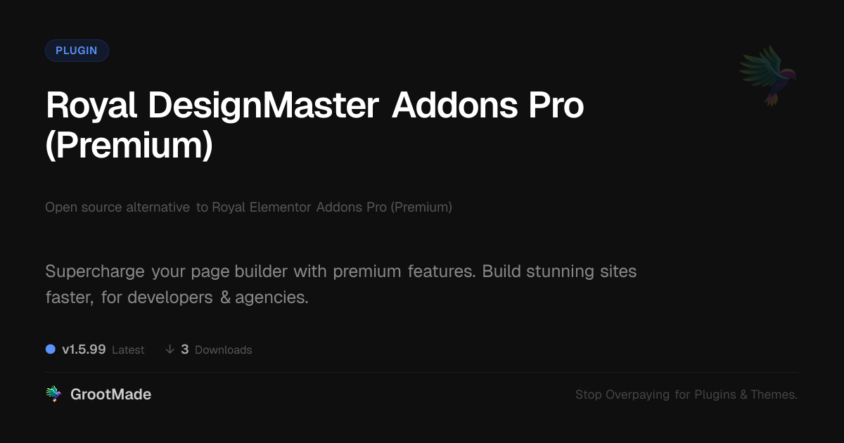 GrootMade is not affiliated with Royal Elementor Addons Pro (Premium) and provides an open-source alternative.