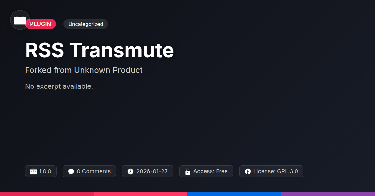 | Forked from | RSS Transmute - Feed Editor and Republisher |