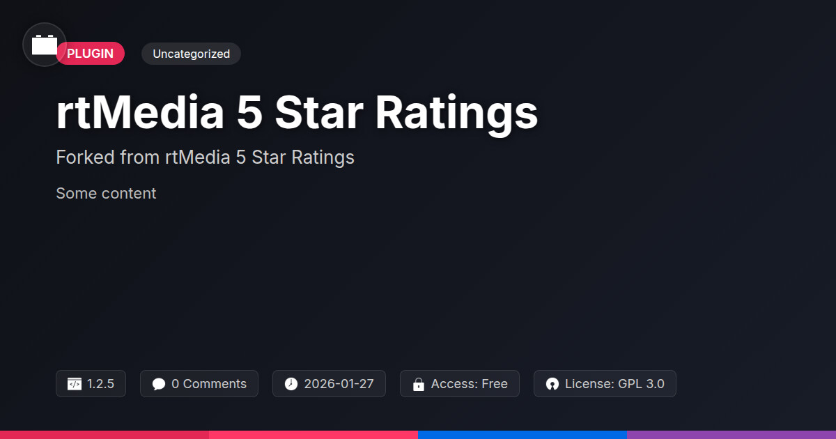 | Tags | user ratings, feedback plugin, content ratings, website ratings, star rating system, WP community tools, domain blocker, drag and drop form builder, Reviews, Ratings, Stars, Testimonials, digital identity control, creator toolkit, real estate theme functionality, Feedback, product reviews, WC, profile tab builder, user reviews, Customer Feedback, customizable listing manager, Voting |