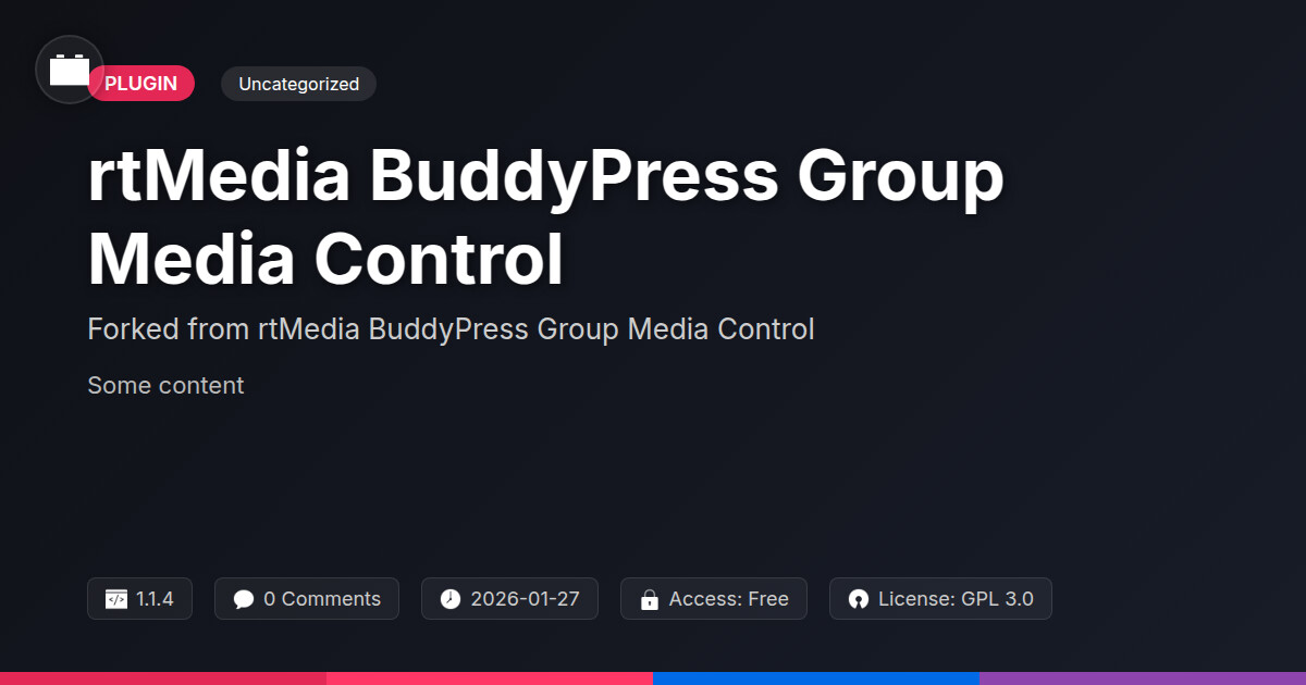 | Tags | developer plugin, Content Moderation, user roles, media library, community file sharing, buddy press media control, group media management, social site media, group management, download forms, Collaboration, Media Sharing, Media Control, Social Groups, profile tab builder, Community, permissions, cms caching |
