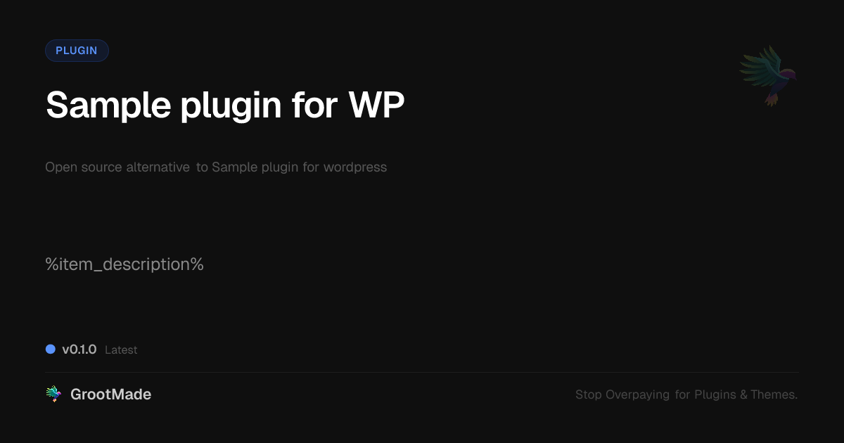 GrootMade is not affiliated with Sample plugin for WP and provides an open-source alternative.