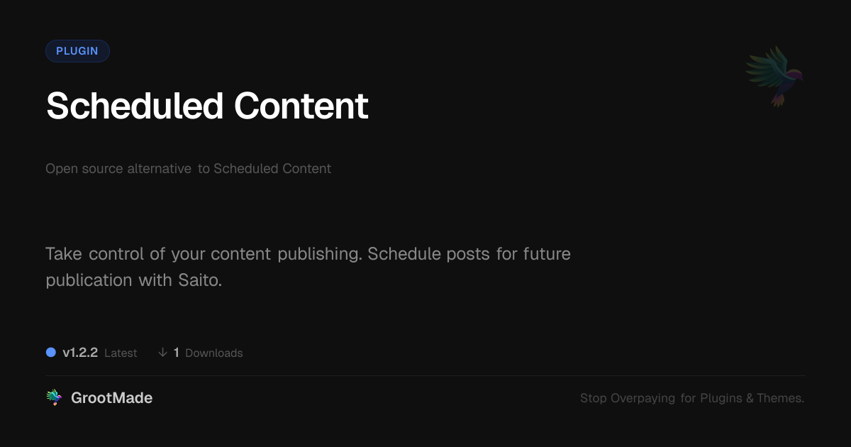 GrootMade is not affiliated with Scheduled Content and provides an open-source alternative.