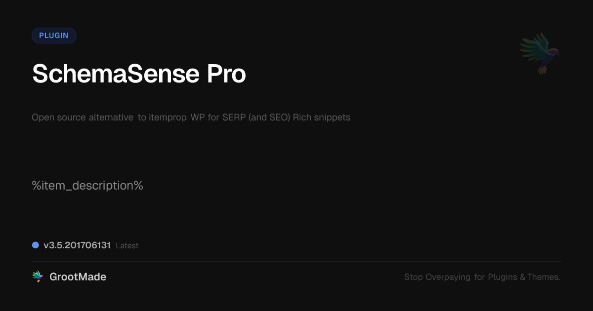GrootMade is not affiliated with itemprop WP for SERP (and SEO) Rich snippets and provides an open-source alternative.