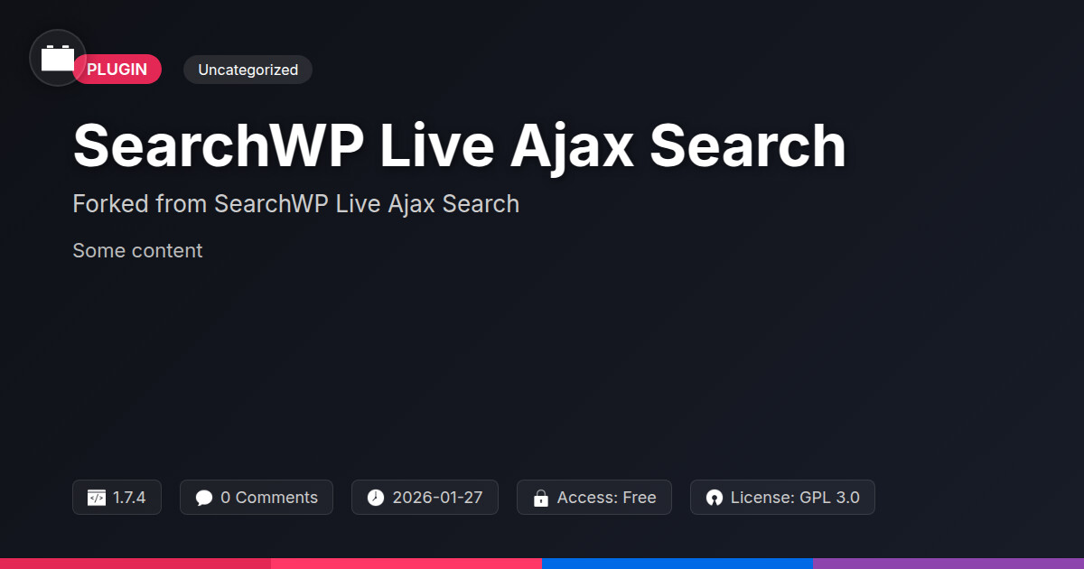 | Tags | site search plugin, developer search tool, agency search solution, live search, instant search, content search enhancement, live ajax search, search engine, Search, Autocomplete, Ajax, Search Results, Searchwp, performance, digital identity control, user experience, member profile enhancements, profile tab builder, user contact form, member communication plugin |