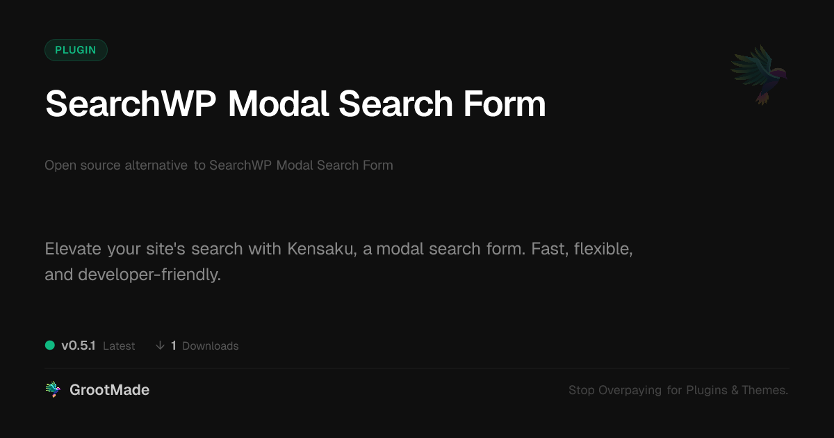 | Tags | content discovery, site search plugin, open source search, enhanced search, custom search, modal search form, clan website theme, Form, Search, Ui, Modal, Ajax, Searchwp, digital identity control, online community safety, user experience, Digital Downloads, profile tab builder, Frontend, user contact form, member communication plugin |